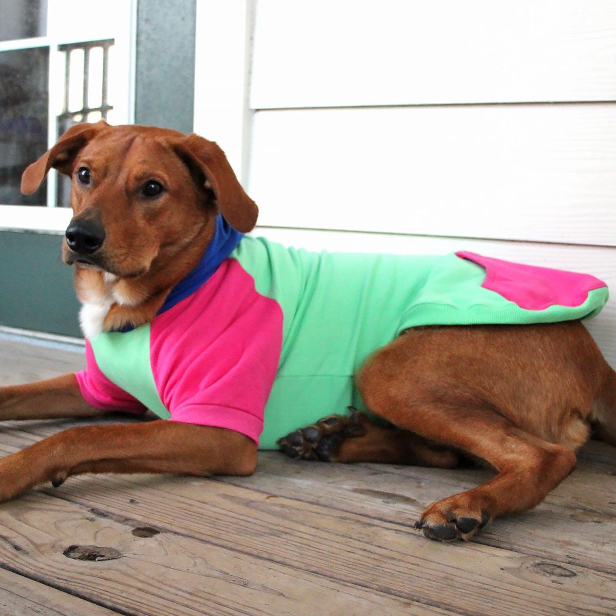 Made from the same soft fabric as our Flex-Fit Dog Hoodies, these bold color-block hoodies are sure to make your pup standout!