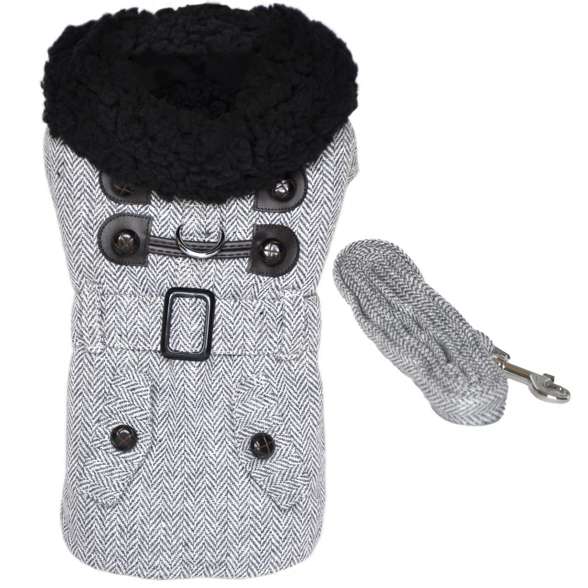 Grey Herringbone Designer Harness Coat and Matching Leash