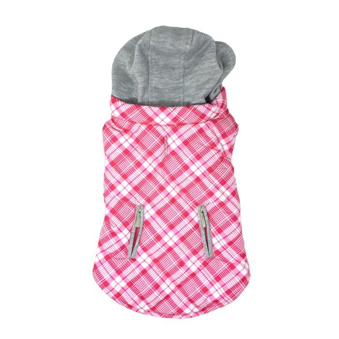 Our Flannel Weekender Sweatshirt Hoodies are great for pups on the go! The outer shell is a soft plaid flannel while the inner lining is cozy, jersey material. The hood is also made of jersey material and can easily zip off when not needed. Reflective stripping makes your pup noticeable in low light while the two-inch fastener down the chest provides an adjustable closure.