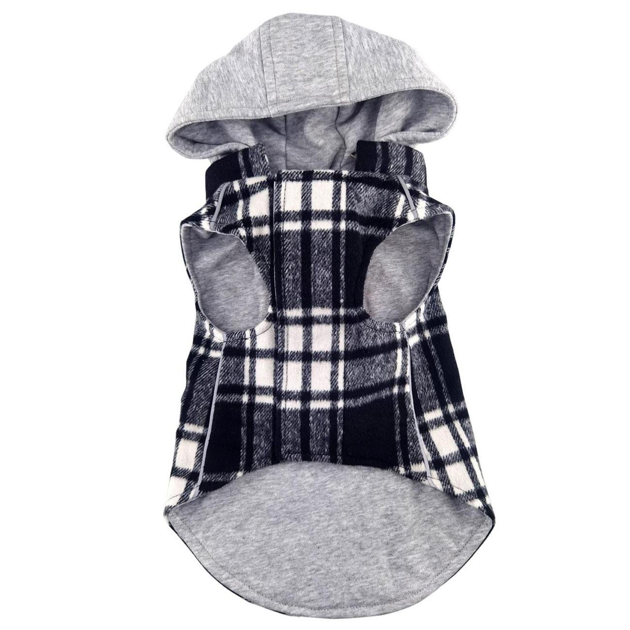 Our Flannel Weekender Sweatshirt Hoodies are great for pups on the go! The outer shell is a soft plaid flannel while the inner lining is cozy, jersey material. The hood is also made of jersey material and can easily zip off when not needed. Reflective stripping makes your pup noticeable in low light while the two-inch fastener down the chest provides an adjustable closure.