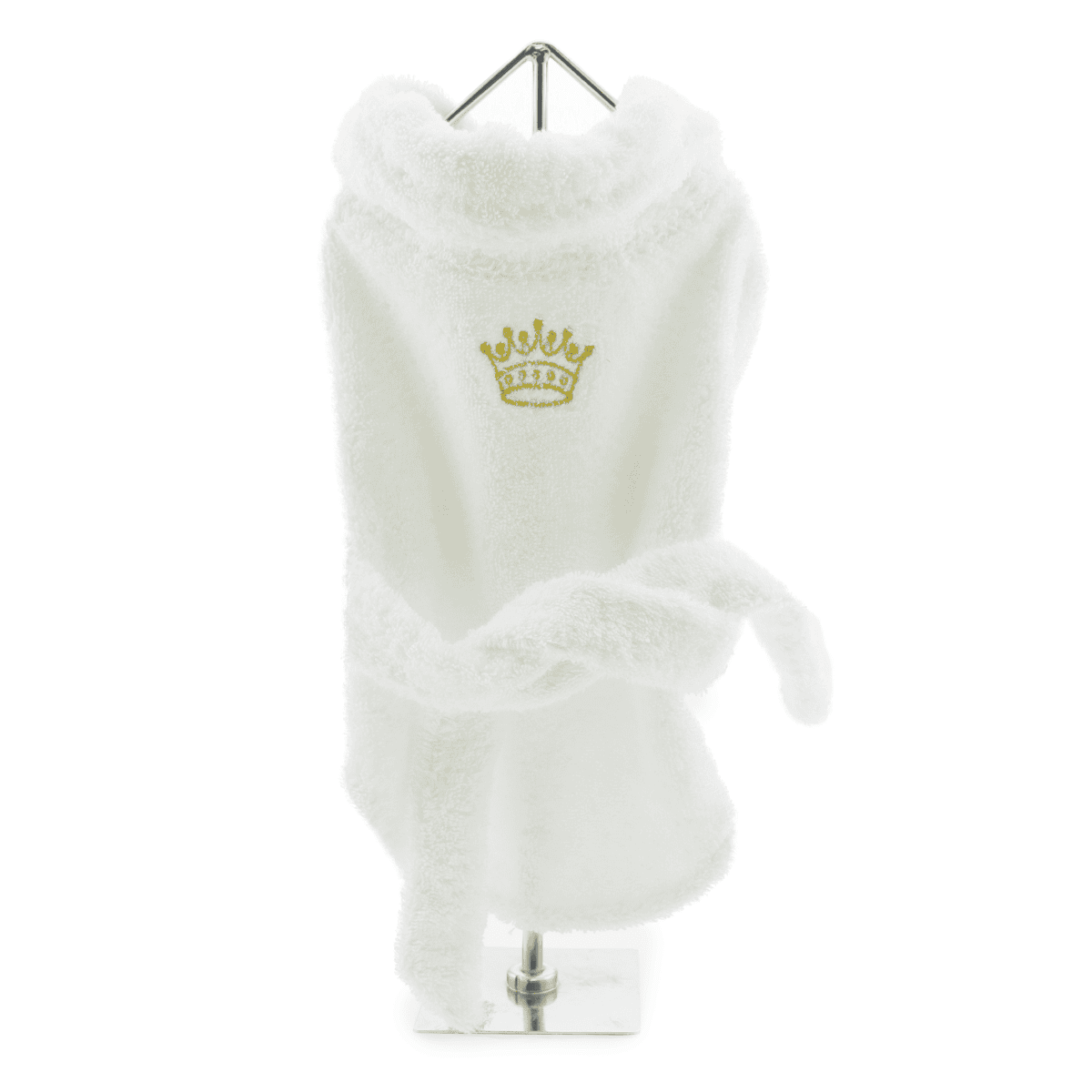White Gold Crown Cotton Dog Bathrobe by Doggie Design